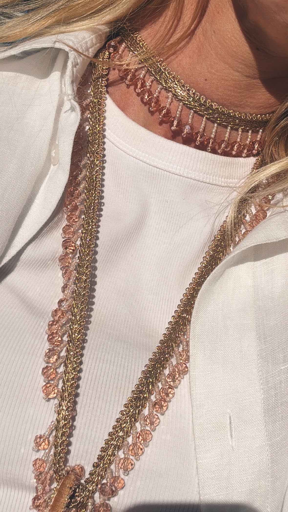 Color dorado con piedras rosas coral